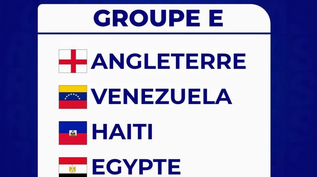Le tirage au sort de la Coupe du Monde des moins de 17 ans de la FIFA , Qatar 2025 a été effectué hier dimanche 26 mai 2025. La sélection nationale haïtienne U-17 est placée dans le groupe E, aux côtés de l’Angleterre, du Venezuela et de l’Égypte. Cette compétition se déroulera au Qatar du 3 au 27 novembre 2025.